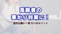 高齢者が寒さを感じやすくなる理由とその具体的な対策を、室温・湿度管理から住宅の断熱、暖房器具の選び方、衣類・寝具、生活習慣に至るまで6つの切り口で詳しく解説。室内を効率よく暖かく保ち、電気代も抑えながら、寒がりに悩む高齢者やご家族が安心して冬を乗り越えるための情報が満載です。